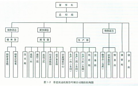 Ⅰ豐碩成果 坐落在中國蘇中平原的泰星減速機(jī)股份有限公司從1984年建廠,經(jīng)過20多年的拼搏發(fā)展,取得了驕人的業(yè)績,創(chuàng)造了許多令人難以置信的奇跡。 從當(dāng)初無資金、無設(shè)備、無產(chǎn)品、無市場(chǎng)的一窮二白、資不抵債的作坊式小廠發(fā)展成為現(xiàn)擁有固定資產(chǎn)3.8億元,員工2500多人,其中一程技術(shù)人員586人,占地68萬平方米的中國最大的減速機(jī)制造企業(yè),成為了中國減速機(jī)的生產(chǎn)基地,泰星減速機(jī)股份有限公司。根據(jù)2003年中國機(jī)械500強(qiáng)的排序,名列全國減速機(jī)行業(yè)榜首。 公司生產(chǎn)減速機(jī)不僅產(chǎn)量最高,銷量也最大。2004年,公司的銷售收入為5.5億元,主要產(chǎn)品的市場(chǎng)占有率高達(dá)25%,已經(jīng)連續(xù)11年名列全國同行首位。 20年前公司為社會(huì)創(chuàng)造了33億4千多萬元的財(cái)富,向國家交納了近4億元的稅金。 公司的產(chǎn)品遍布全國各地,并已走向德國、日本、美國等機(jī)械強(qiáng)國,國家的重點(diǎn)工程項(xiàng)目,從三峽水利工程,江陰長江大橋建設(shè)工程,黃河小浪底工程,葛洲壩工程,西氣東輸工程到南水北調(diào)工程等都在使用泰星的產(chǎn)品。 泰星減速機(jī)股份有限公司組織機(jī)構(gòu)圖見圖1-2。在公司目前的2500多名員工中,有50%為當(dāng)?shù)剞r(nóng)民,大專以上學(xué)歷的僅占20%,其余的皆為初、高中以下學(xué)歷,但他們卻生產(chǎn)出了國內(nèi)領(lǐng)先、國際一流的產(chǎn)品。 泰星牌減速機(jī)成為中國減速機(jī)行業(yè)惟一的國家“121”重點(diǎn)保護(hù)名優(yōu)產(chǎn)品。