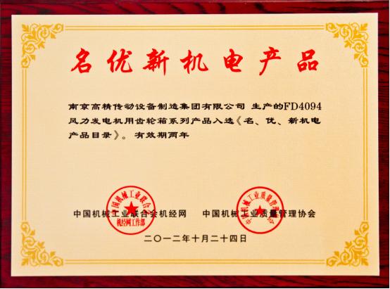 近期,由中國機械工業(yè)質(zhì)量管理協(xié)會和中國機械工業(yè)聯(lián)合會機經(jīng)網(wǎng)共同主辦的“名優(yōu)新機電產(chǎn)品”評選活動中,南京高精傳動設(shè)備制造集團(tuán)有限公司(簡稱:南高齒)子公司南京高速齒輪制造有限公司研制的的FD4094型風(fēng)電齒輪箱系列產(chǎn)品成功入選《名、優(yōu)、新機電產(chǎn)品目錄》。