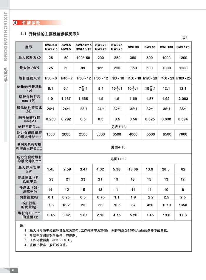 QWL系列蝸輪絲桿升降機(jī)是一種基礎(chǔ)起重部件,已列為JB/ZQ4391-86標(biāo)準(zhǔn)。承載能力2.5-120T。具有結(jié)構(gòu)緊湊,體積小,重量輕,動(dòng)力源廣泛。無噪音,安裝方便,使用靈活,功能多。配套形式多,可靠性高,使用壽命長(zhǎng)等許多優(yōu)點(diǎn)。具有提升、降落、推進(jìn)、翻轉(zhuǎn)等多種功能。可單臺(tái)也可組合使用,可能用電動(dòng)機(jī)或其他動(dòng)力直接帶動(dòng),也可手動(dòng)。有不同的結(jié)構(gòu)型式和裝配方式,提升高度可按用戶的要求制造,該裝置可以自鎖。