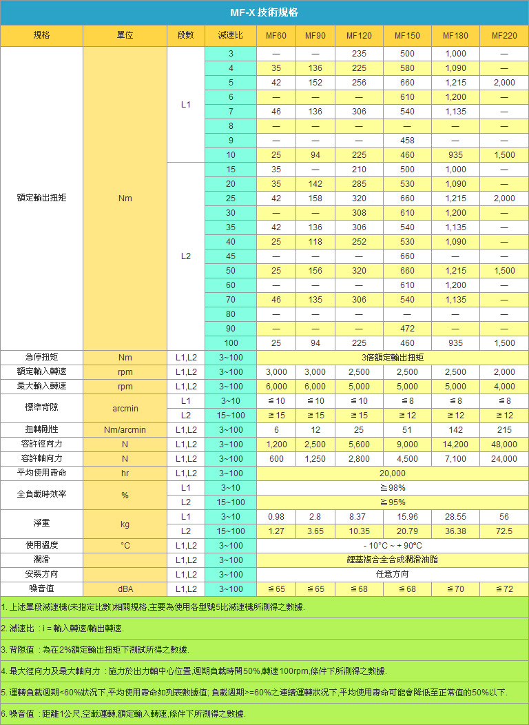 MFT120L0,MFT90L2,MFT90L3(減速機數(shù)比1~50)