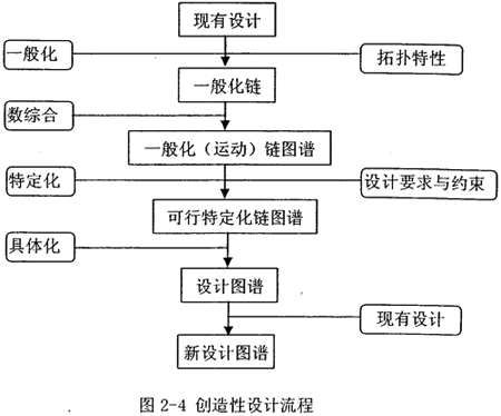 本文則采用顏鴻森與黃以文提出的一套程序化的創(chuàng)造性設(shè)計(jì)法來(lái)完成設(shè)計(jì),它可用于系統(tǒng)地構(gòu)想出符合特定設(shè)計(jì)要求與約束,并與可行的現(xiàn)有設(shè)計(jì)完成相同或相似任務(wù)的機(jī)械裝置全部可能的拓?fù)錁?gòu)造。