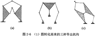 由(1)圖,取不同的構(gòu)件為機(jī)架,經(jīng)過(guò)特定化后,可轉(zhuǎn)化為三種導(dǎo)出機(jī)構(gòu),如圖2-6。