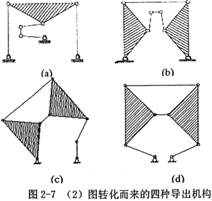 由(2)圖,取不同的構(gòu)件為機(jī)架,經(jīng)過(guò)特定化后,可轉(zhuǎn)化為四種導(dǎo)出機(jī)構(gòu),如圖2-7。