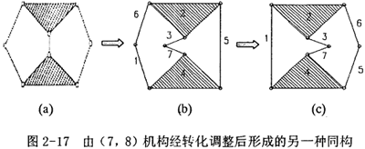 (1)一般化,是指將具有機(jī)件和運(yùn)動(dòng)副的原始機(jī)械裝置,轉(zhuǎn)化為只有一般化連桿和一般化(運(yùn)動(dòng))副的機(jī)構(gòu),這樣形成的閉環(huán)鏈稱為一般化(運(yùn)動(dòng))鏈。