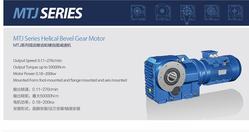 MTJ系列減速機(jī),采用兩對斜齒輪和一對螺旋錐齒輪傳動(dòng),使輸入和輸出呈直角。螺旋錐齒輪傳動(dòng),重合系數(shù)大、承載力...