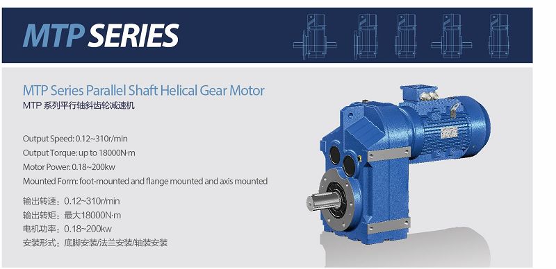 MTP系列減速機(jī)是平行軸斜齒輪減速機(jī),其體積小、重量輕、傳遞扭矩大、能耗低、效率高、溫升低、負(fù)載力強(qiáng)、結(jié)構(gòu)形...