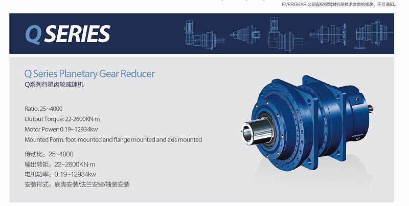 Q系列行星齒輪減速機(jī)是由數(shù)個(gè)行星輪同時(shí)傳遞載荷,使功率分流并合理地使用了內(nèi)嚙合,具有結(jié)構(gòu)緊湊、體積小、重量輕...