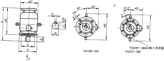 YH系列電動(dòng)機(jī)外形及安裝尺寸圖(V1