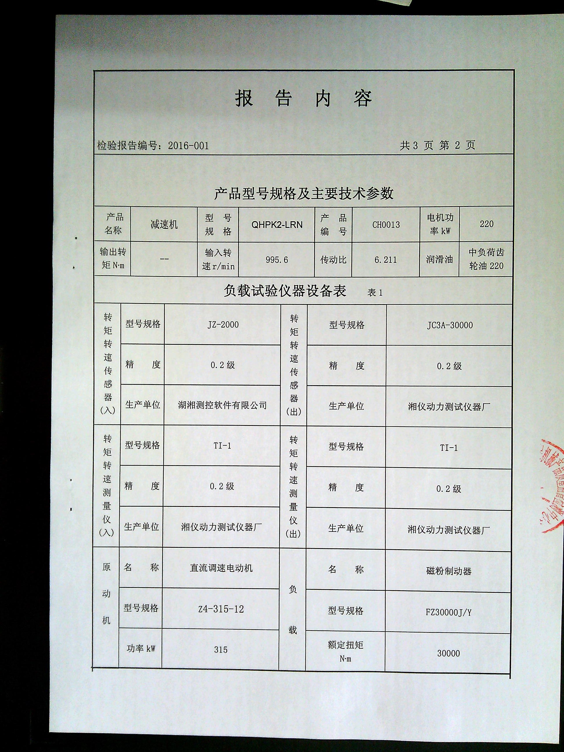 減速機(jī)檢驗(yàn)報(bào)告檢測(cè)報(bào)告