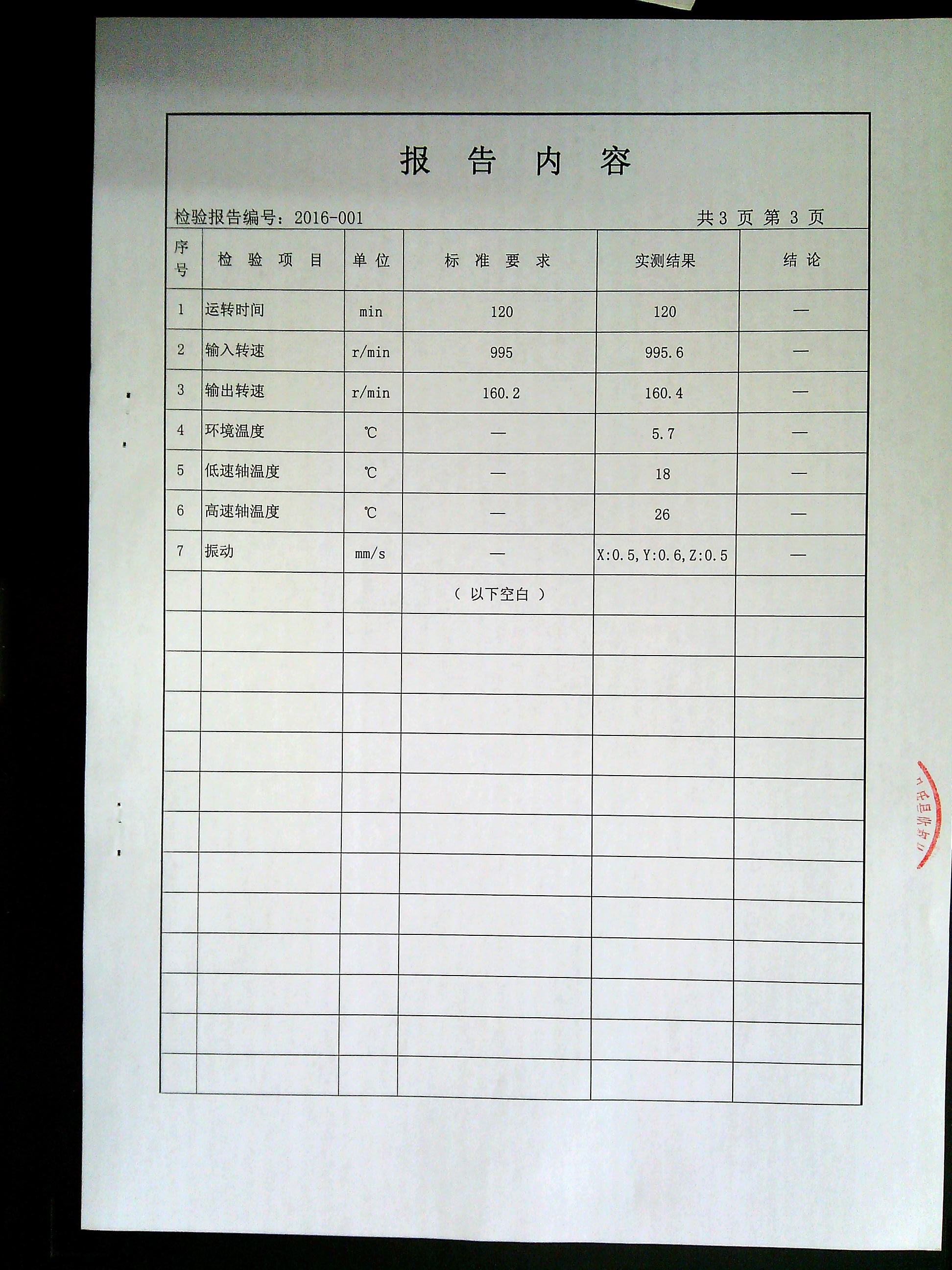 減速機(jī)檢驗(yàn)報(bào)告